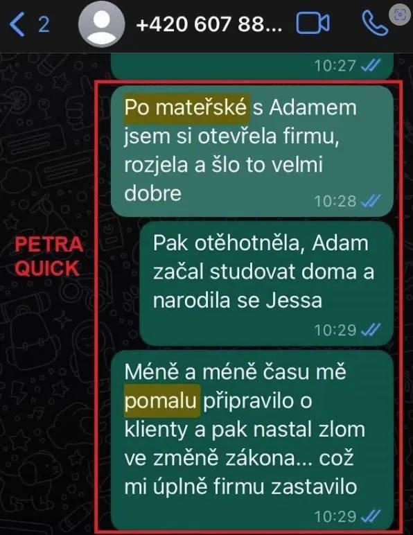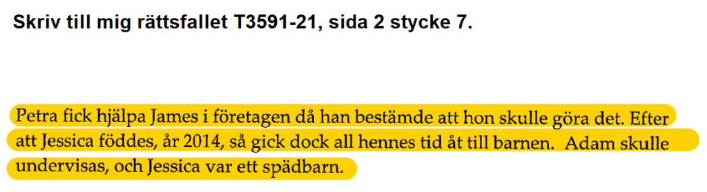 Zde Petra ve Švédsku uvádí, že od roku 2014 se věnovala jen dětem a nepodnikala. Je to důkaz prokazující úmyslné maření vyšetřování Petry podnikatelských aktivit od roku 2008.