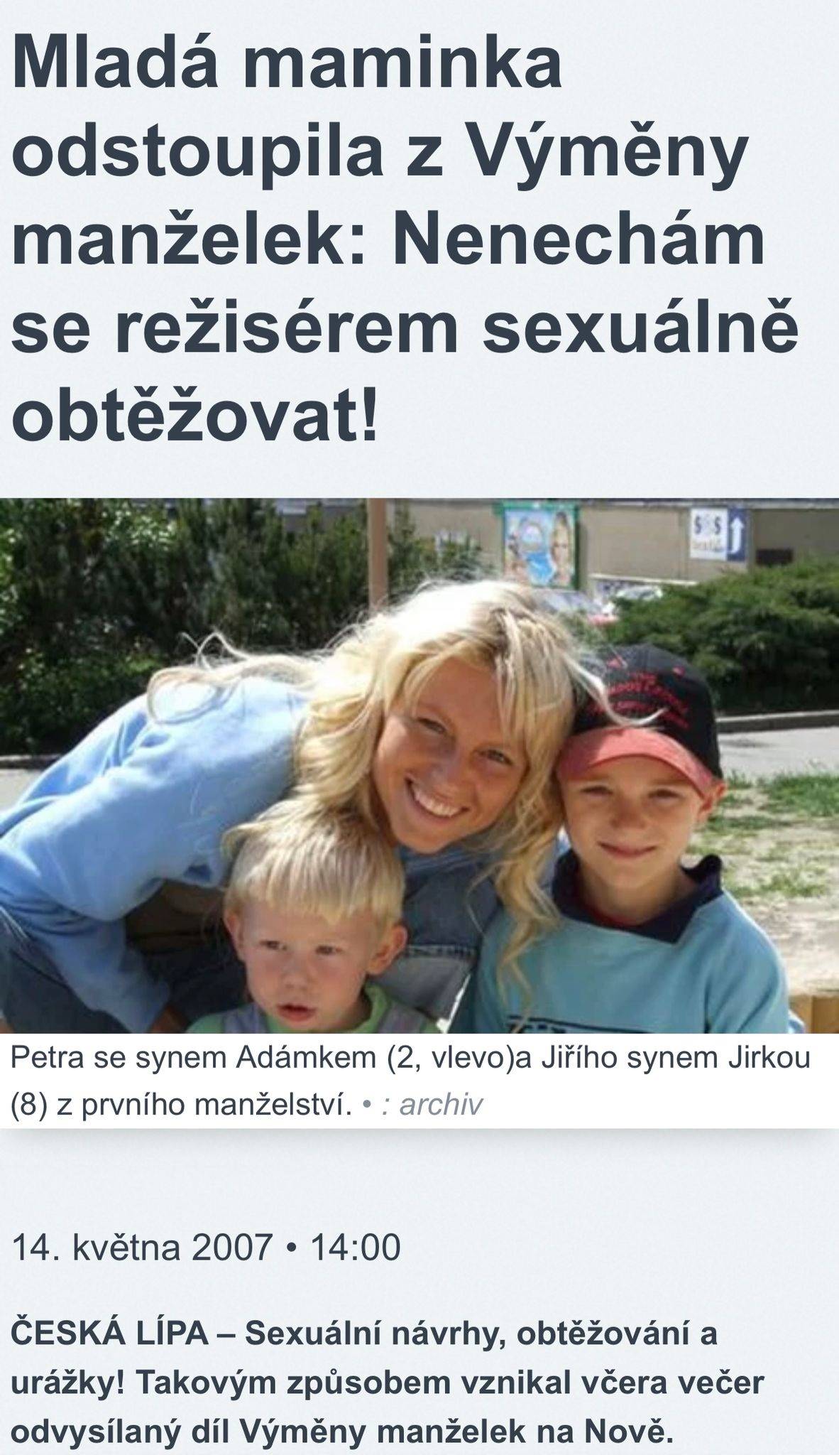 Petra har varit involverad i många skandaler: Innan hon träffade James rörde hon sig i drogmiljöer, försörjde sig som Go Go-dansös på herrklubbar, var beroende av piller som ADIPEX, hade en notering om ett självmordsförsök genom överdosering i sin medicinska journal, felaktigt anklagade flera personer för sexuella trakasserier för att få fördelar, undgick en bot i realityshowen “Výměna manželek” och klarade sitt slutprov.