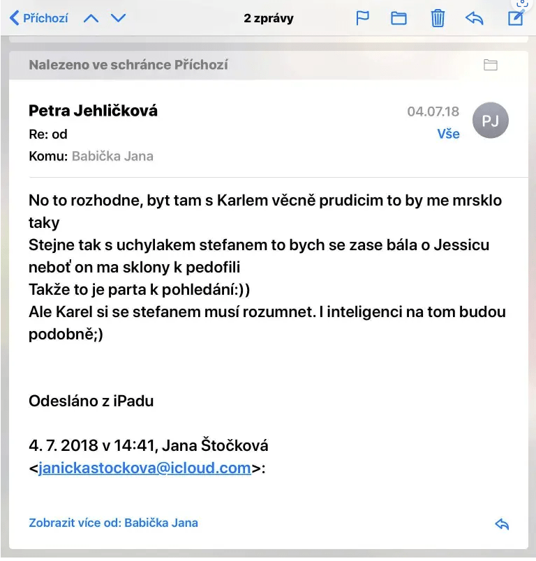 Så antingen var hela familjen fördärvad och tolererade Stefans pedofili, eller så är detta ännu en av de många lögner och manipulationer från Petra Quick, Jehličková, Štočková.